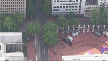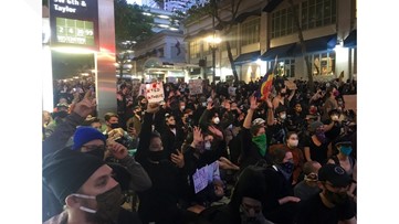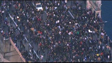 Moments before 6:30 p.m., just when Trump said he would begin his address, the officers suddenly marched forward, directly confronting the protesters as many held up their hands, saying, “Don’t shoot.”