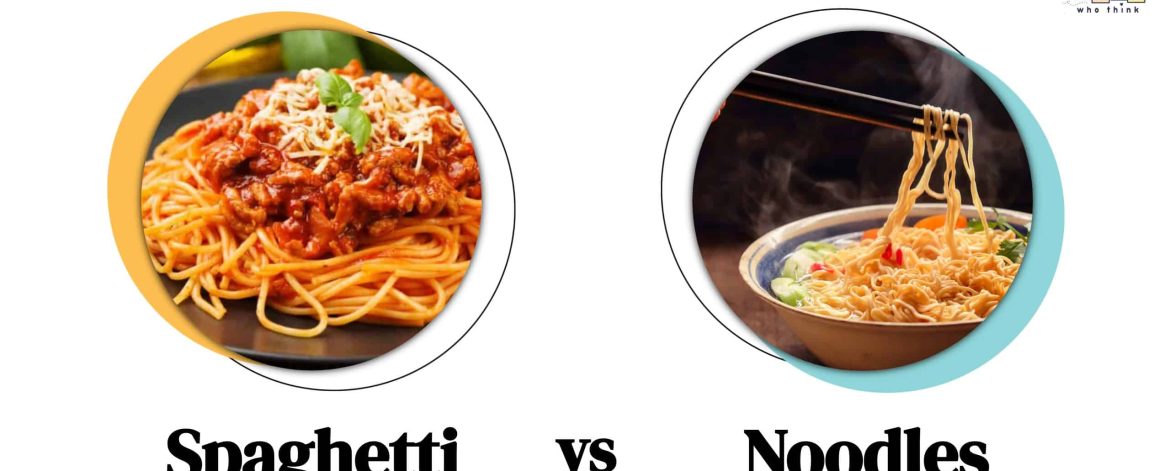- Spaghetti is usually long, both thick and thin and cylindrical conversely noodles are thin, elongated and less thick.
