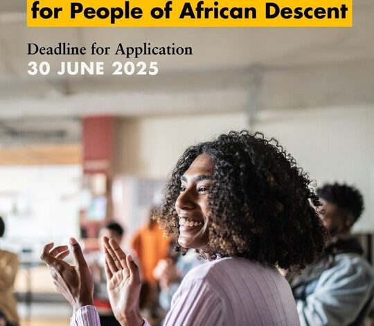 Applications are now open for the 2025 UN Human Rights Commission Fellowship Programme. The Fellowship programme for people of African descent is an intensive human rights training for people of African descent, from the diaspora, who are engaged in promoting the rights of people of African descent.