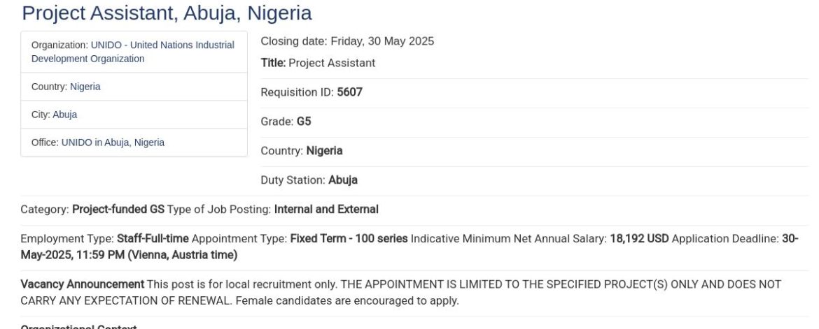 The post Team Assistant – Abuja at UNIDO appeared first on HausaLoaded.com | Best African Hausa Music Blog, Entertainment ,News and Gossips .
