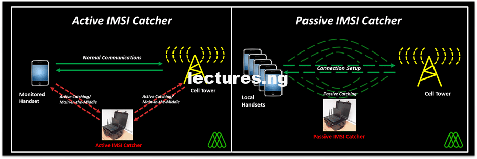 An IMSI catcher does this by ‘pretending’ to be a mobile phone tower – tricking your phone into connecting to the IMSI-catcher, and then revealing your personal details without your knowledge.